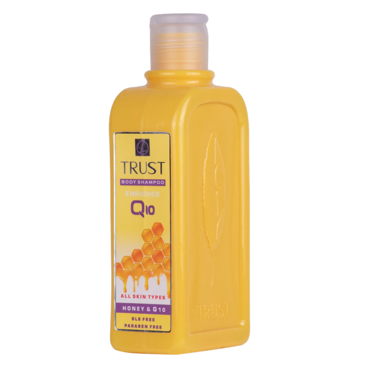 شامپو بدن عسل و Q10 تراست، حاوی عسل است که لایه رویی پوست را آبرسانی میکند و چین و چروکهای پوست را کاهش میدهد. همچنین این شامپو بدن با داشتن کوآنزیم کیوتن به تقویت سد دفاعی پوست کمک میکند و جلوی آسیب پرتوهای UV خورشید را میگیرد. عصاره بابونه موجود در این محصول ضدالتهاب و روشنکننده پوست است.