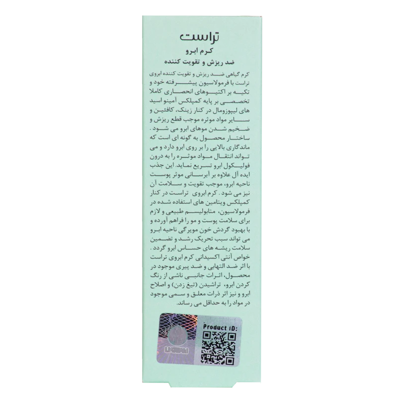 کرم گیاهی تقویت کننده ابروی تراست، با فرمولاسیون پیشرفته خود و تکیه بر مواد موثره خاص، موجب کنترل ریزش و ضخیم شدن موهای ابرو میشود. ساختار محصول به گونهای است که ماندگاری و اثر زیادی بر روی ابرو دارد و میتواند انتقال مواد موثره را به درون فولیکول ابرو تسریع کند. این جذب ایدهآل، علاوه بر آبرسانی موثر پوست ناحیه مورد نظر، موجب تقویت و سلامت ابرو نیز میگردد. از سوی دیگر مواد موثره گیاهی در کنار ویتامینهای استفاده شده، متابولیسم طبیعی و لازم برای پوست و مو را فراهم آورده و با بهبود خونرسانی محیطی میتواند سبب تحریک رشد و تضمین سلامت ریشههای حساس مو گردد.