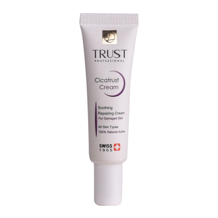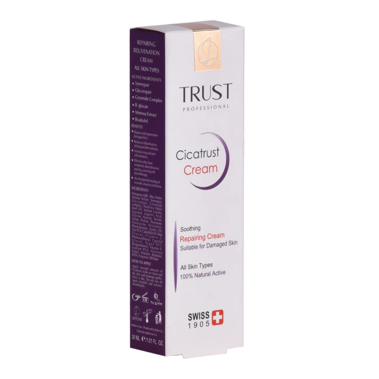 کرم ترمیم کننده تراست مناسب ترمیم پوستهای آسیبدیده و درمان انواع آسیبهای پوستی است. مواد مؤثره موجود در این کرم باعث تحریک به تکثیر سلولهای پوستی و ترمیم آسیبهای واردشده به پوست میشوند؛ این کار را نیز با افزایش انقباض عضلات اطراف ناحیه آسیبدیده، کمک به جمع شدن زخمها و بهبود سریعترشان انجام میدهند. وجود ترکیبات فعال گیاه براسیکای این محصول، از رشد باکتریها و قارچها جلوگیری کرده و از طریق اولیگوگالاکتومانان جلوی التهاب، قرمزی، خارش و سوزش پوست در ناحیه آسیبدیده را میگیرد. همچنین مصرف این کرم با داشتن ترکیبات فعال سرامیدی به آبرسانی پوست هم کمک میکند.
