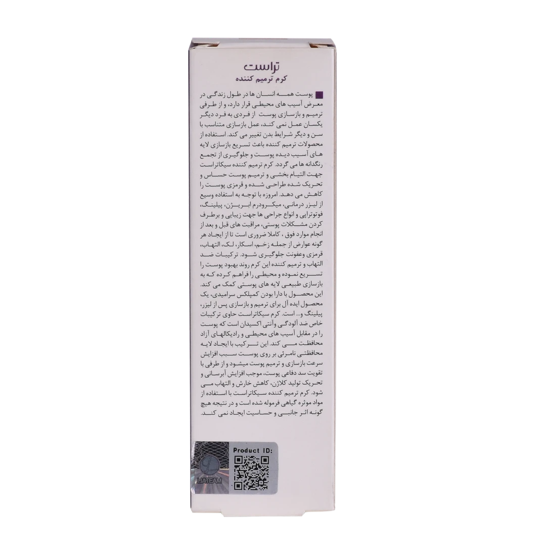 کرم ترمیم کننده تراست مناسب ترمیم پوستهای آسیبدیده و درمان انواع آسیبهای پوستی است. مواد مؤثره موجود در این کرم باعث تحریک به تکثیر سلولهای پوستی و ترمیم آسیبهای واردشده به پوست میشوند؛ این کار را نیز با افزایش انقباض عضلات اطراف ناحیه آسیبدیده، کمک به جمع شدن زخمها و بهبود سریعترشان انجام میدهند. وجود ترکیبات فعال گیاه براسیکای این محصول، از رشد باکتریها و قارچها جلوگیری کرده و از طریق اولیگوگالاکتومانان جلوی التهاب، قرمزی، خارش و سوزش پوست در ناحیه آسیبدیده را میگیرد. همچنین مصرف این کرم با داشتن ترکیبات فعال سرامیدی به آبرسانی پوست هم کمک میکند.