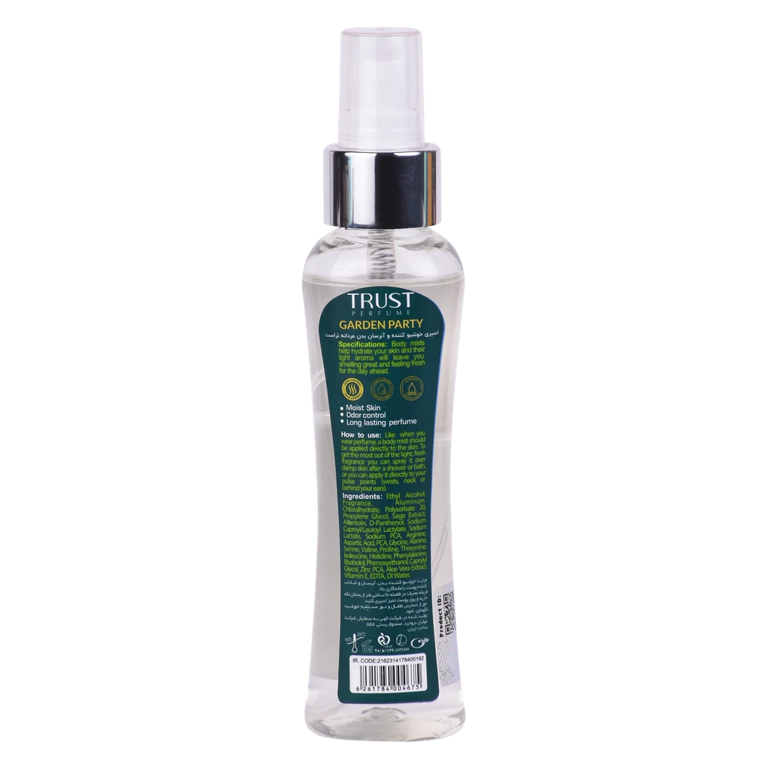 بادی میست مردانه تراست مدل Garden Party با ترکیبات منتخب خود، یک عطر خاص و ایدهآل برای مردانی است که میخواهند با بویی سبز و تند تازه حضور خود را مشخص کنند. تجربه این بادی میست که حس آروماتیک را به شما هدیه میدهد، میتواند شما را در هر موقعیتی خوشایند و دلچسب جلوه دهد.